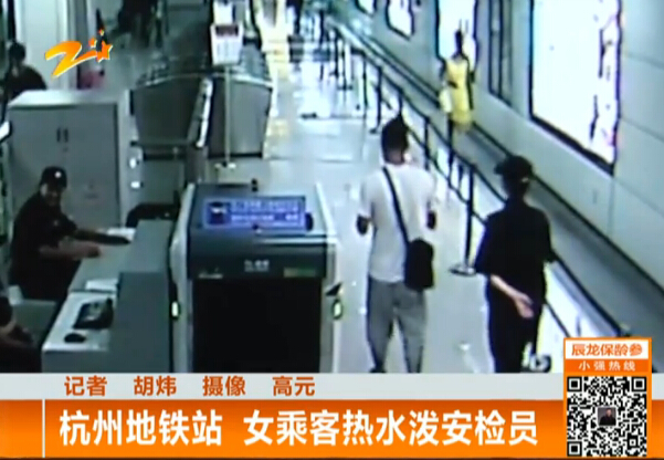 杭州地鐵站安檢機檢查站 女乘客潑熱水襲擊